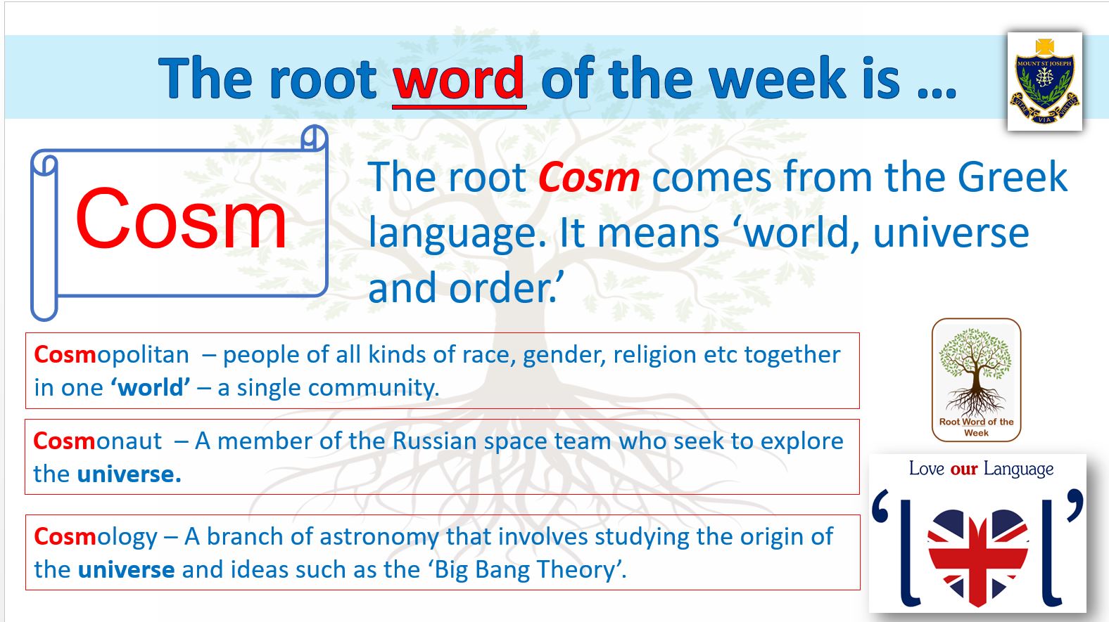 Mount St Joseph On Twitter The Root Word Of The Week Is Cosm Can You Think Of Any Other Words Beginning With Cosm Msjcommunity Msjwow Https T Co Hvgshuppgw Twitter
